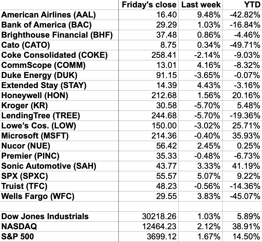 Unless you are a day trader, checking your stocks daily is unhealthy. So how about weekly? How local stocks of note fared last week (through Friday’s close), and year to date: