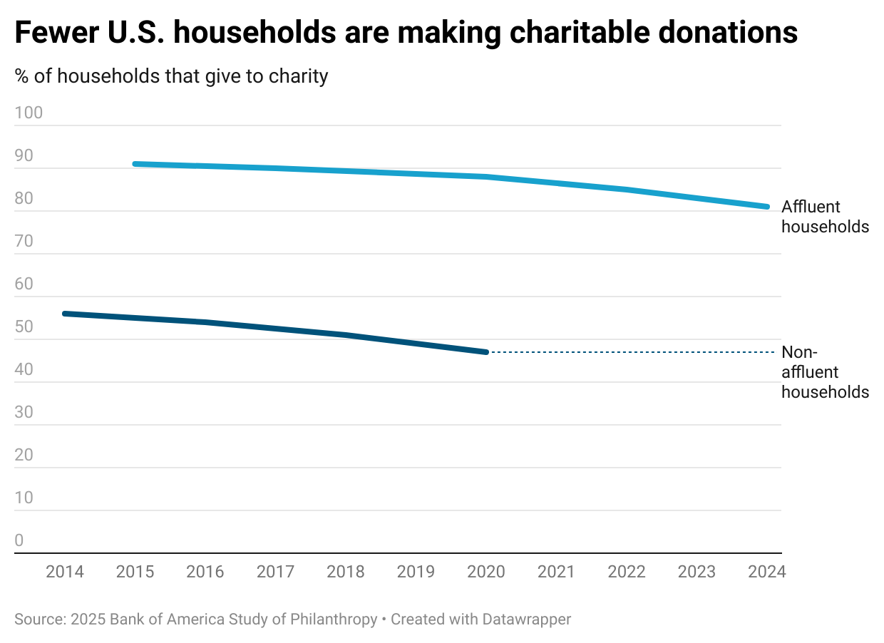 Some of those charities are under pressure nowadays, as pullbacks in federal funding and shifting priorities from foundations are making private philanthropy more critical.