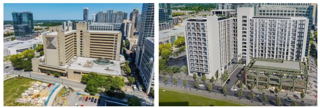 At a meeting last week of the county’s economic development committee, Welch Liles, a managing director of Asana Partners, said that the plan to convert the office building into 448 apartments and retail space would represent a “first-of-its-kind conversion opportunity in Charlotte” — but that it can’t be done without a “partnership” with Mecklenburg County and the city of Charlotte. [Edited 4/9/24 to correct title of Liles]